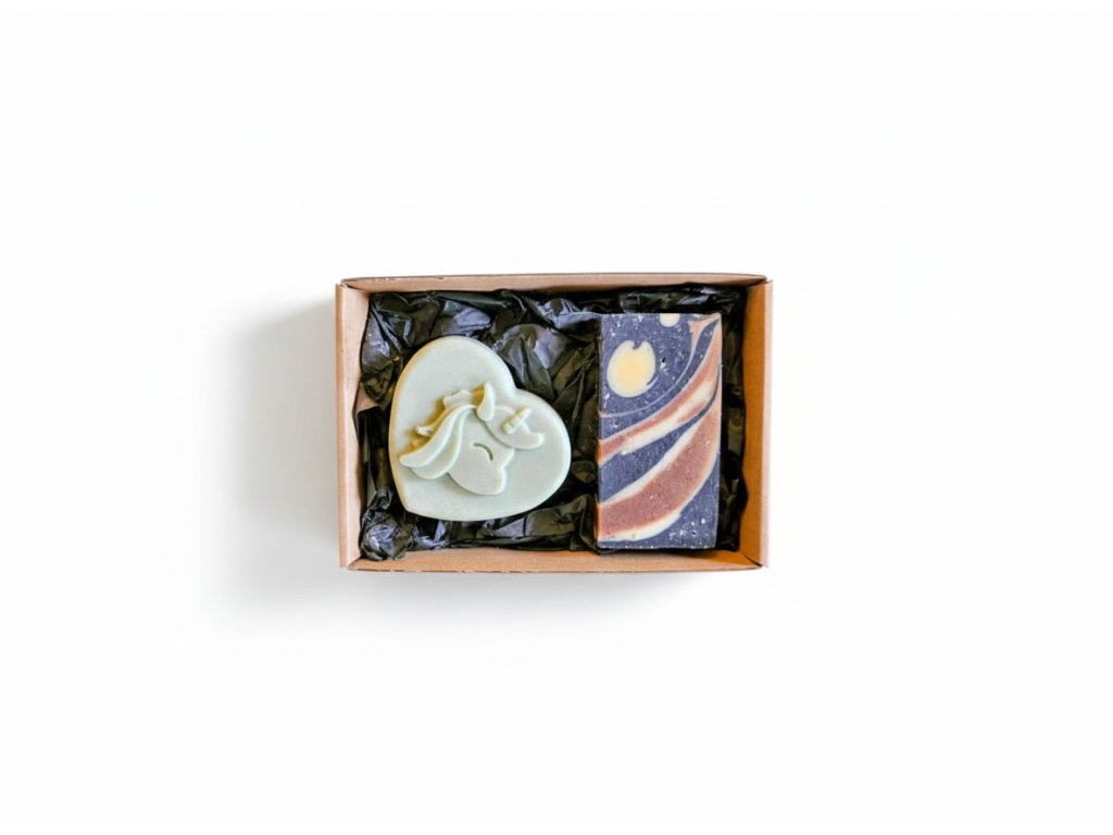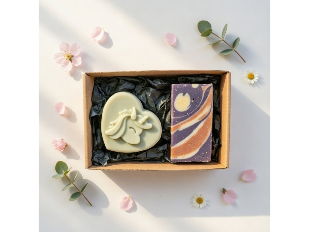 Další surovinou je kakaové máslo - surové, organické, té nejvyšší kvality. V mýdle zajišťuje jeho pevnost, vysokým obsahem antioxidantů pomáhá snížit suchost a zlepšit pružnost pokožky. Mandlový a slunečnicový olej dodávají pečující vlastnosti, mají regenerační a také uklidňující účinky.